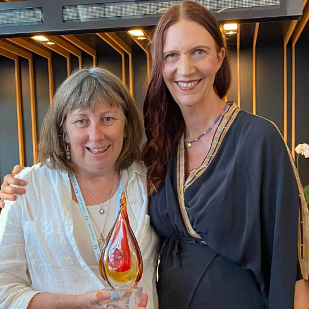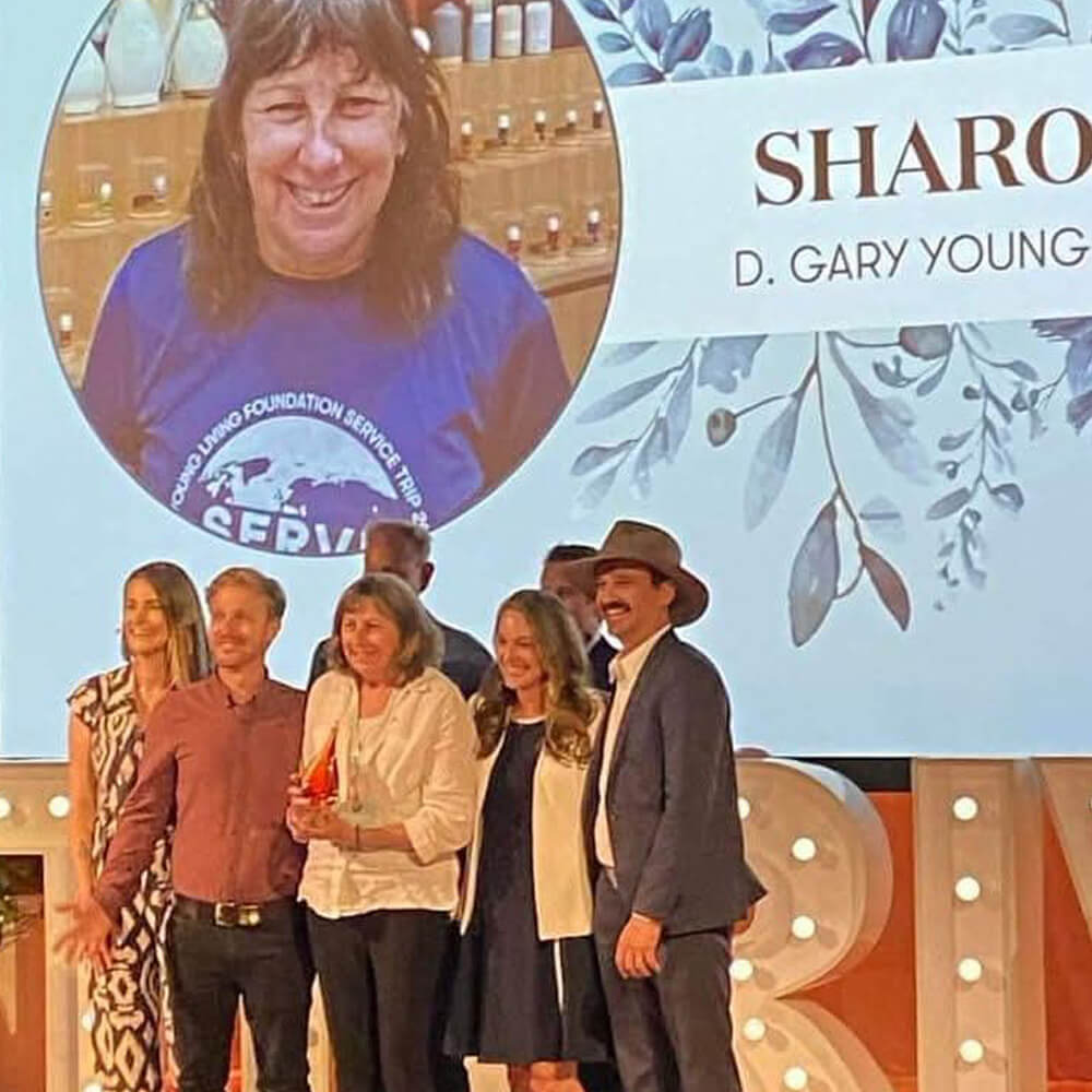 Sharon receiving her award (THRIVE 2024) for her many years of support to The Young Living Foundation.